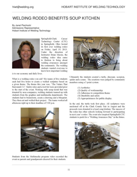 donated by area companies, welding students teamed up with (3) Adherence to competition theme