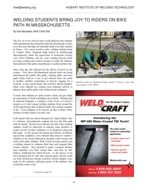 is a Hudson, Massachusetts resident and uses the bike path WP-280 Water-Cooled TIG Torch!
