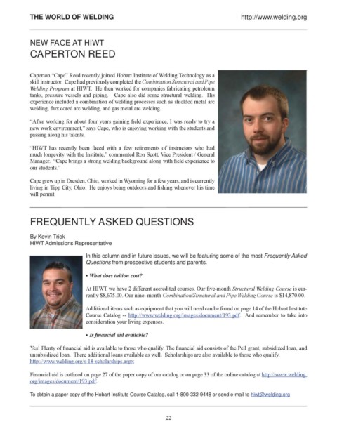 Financial aid is outlined on page 27 of the paper copy of our catalog or on page 33 of the online catalog at http://www.welding.