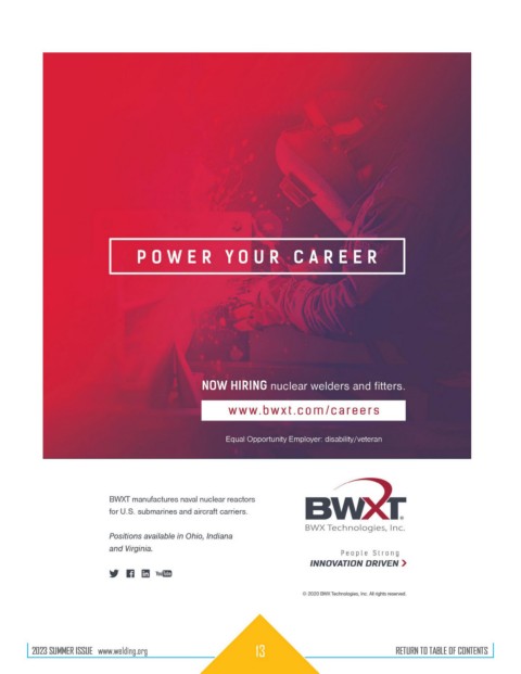 2023 SUMMER ISSUE www.welding.org 13 RETURN TO TABLE OF CONTENTS
