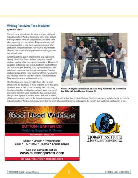 2023 SUMMER ISSUE www.welding.org 6 RETURN TO TABLE OF CONTENTS
